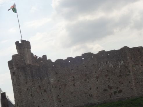 The Welsh flag flying above the Norman Keep of the Cardiff Castle