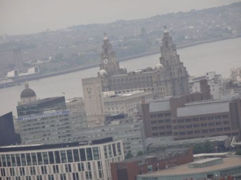 The Royal Liver Building seen from atop the Liverpool Cathedral