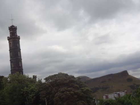 The Nelson Monument with Holyrood Park in the background